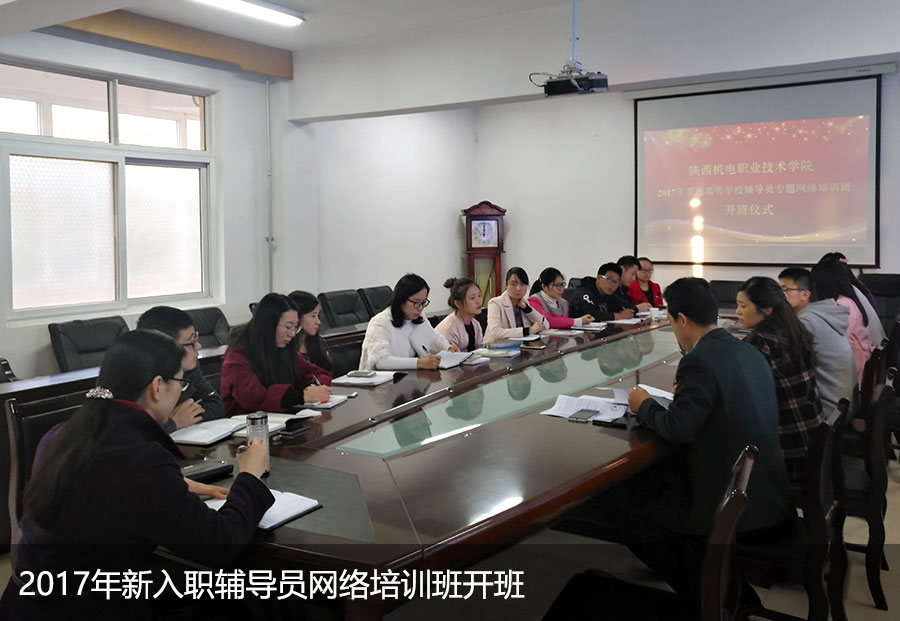 为深入贯彻落实“教育部43号令”和“陕高教生[2015]6号”文件精神,进一步加强辅导员队伍建设,提升辅导员职业素质,2017年11月7日下午,在学管中心二楼会议室举行了2017年新入职辅导员网络培训班开班仪式。院党委委员、主管副院长张琴出席会议。学工部部长朱云洁、学工办副主任王芙蓉和全体辅导员参加了开班仪式,学工部部长朱云洁主持开班仪式。