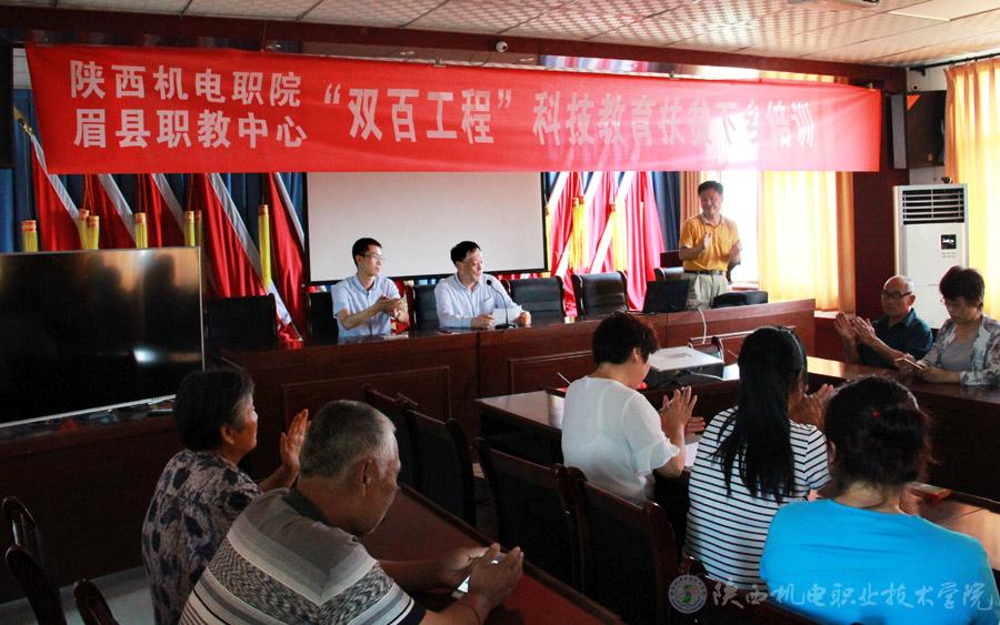 按照陕西省“双百工程”扶贫工作安排部署,结合学院资源优势和精准扶贫工作实际,为有利助推扶贫攻坚,切实抓好产业增收,有效提高贫困户收入,6月28日,陕西机电职业技术学院聘请谢建龙教授在眉县汤峪镇闫家堡村实地开展“双百工程”科技教育培训会,学院扶贫领导小组成员、工会副主席李明出席会议,70多名种植村民参加了此次猕猴桃夏季种植管护技术培训。