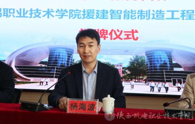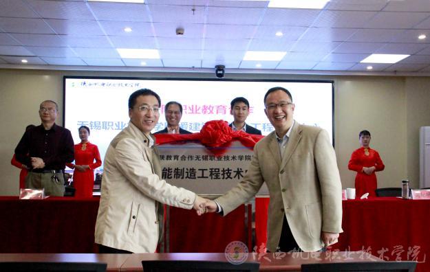 讲座结束之后,两校进行了《苏陕职业教育合作-无锡职业技术学院援建智能制造工程技术中心》揭牌仪式。教育厅高教处副处长杨海波、无锡职业技术学院院长龚方红、我院书记伊逊智、院长向纪明参加了此次活动,本次活动的进行标志着两院合作进入实质性新的阶段。