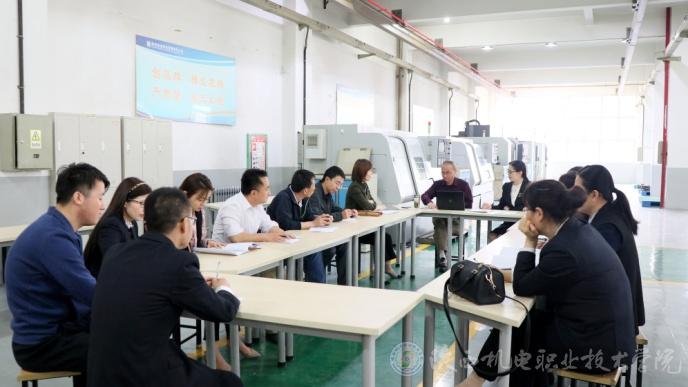 最后,在数控车间,黄麟院长现场对我院的智能制造生产线建设方案进行了研讨论证。他从建设方案的思路、方案配置多方面进行了可行性分析,提出了宝贵的建议。