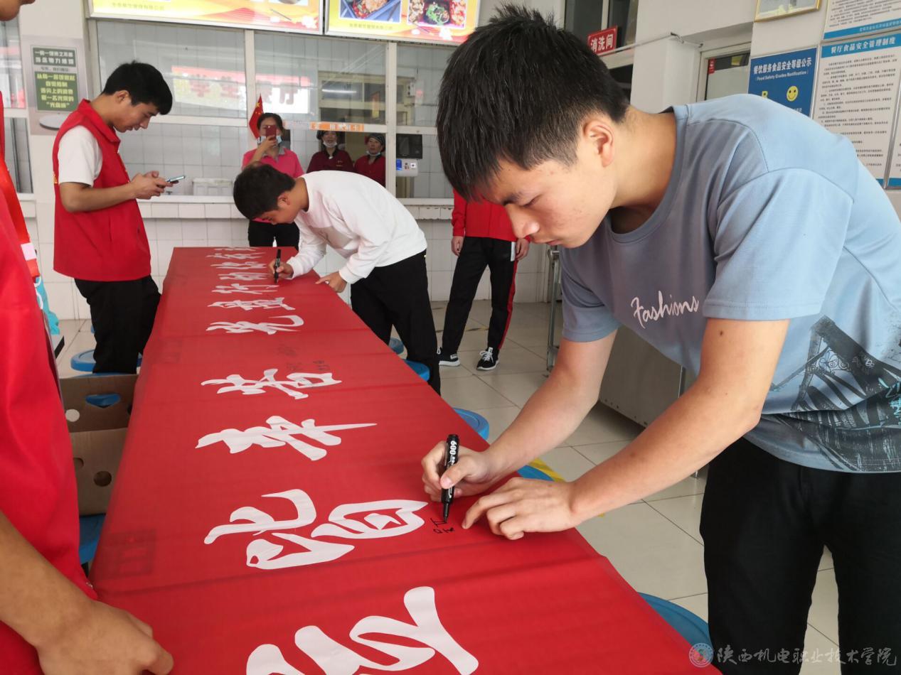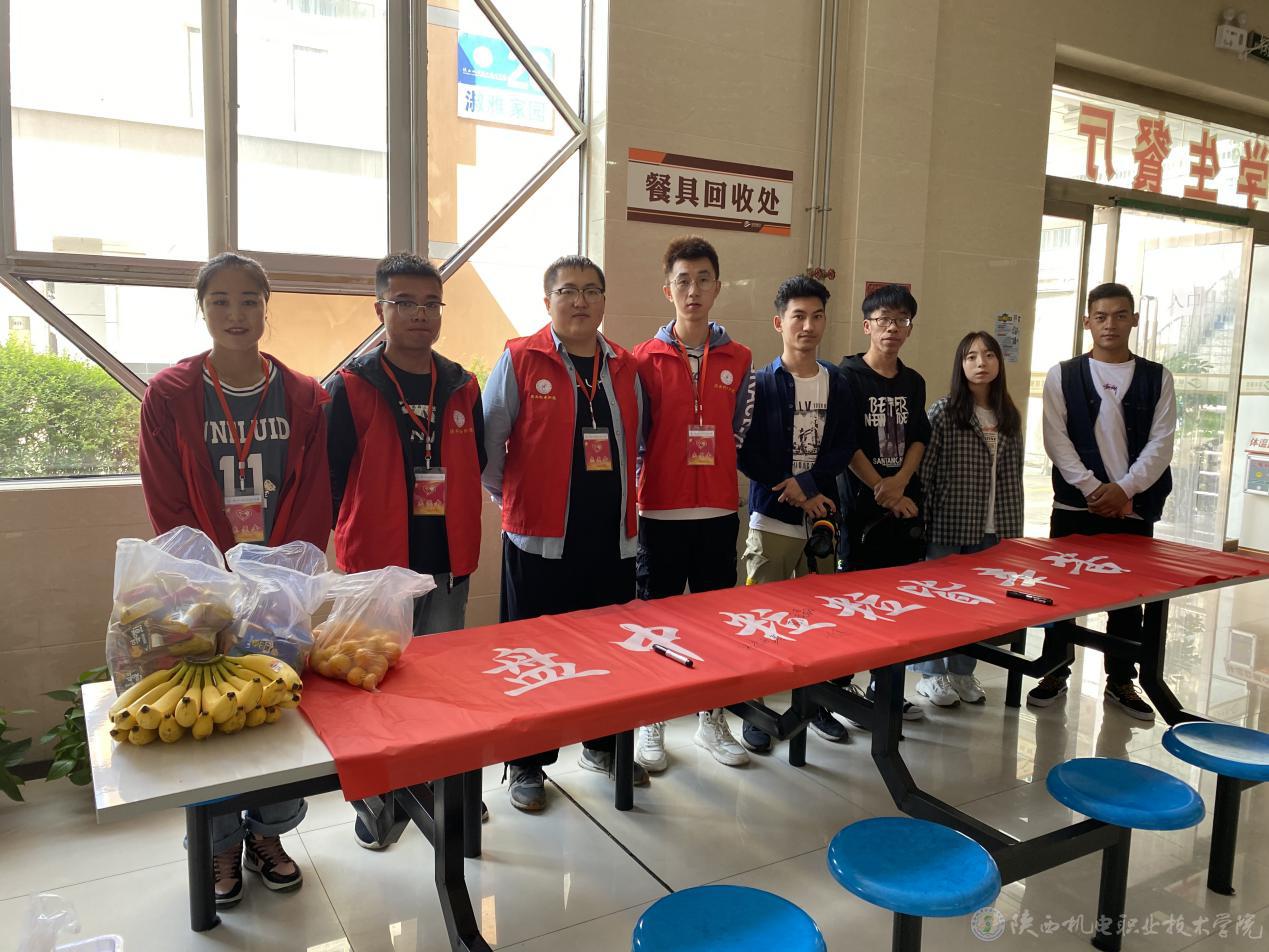 9月29日中午校团委联合志愿者分别在学校两个食堂收餐处旁边放置横幅和小礼品,学生可凭借光盘在横幅上签字并领取礼品。