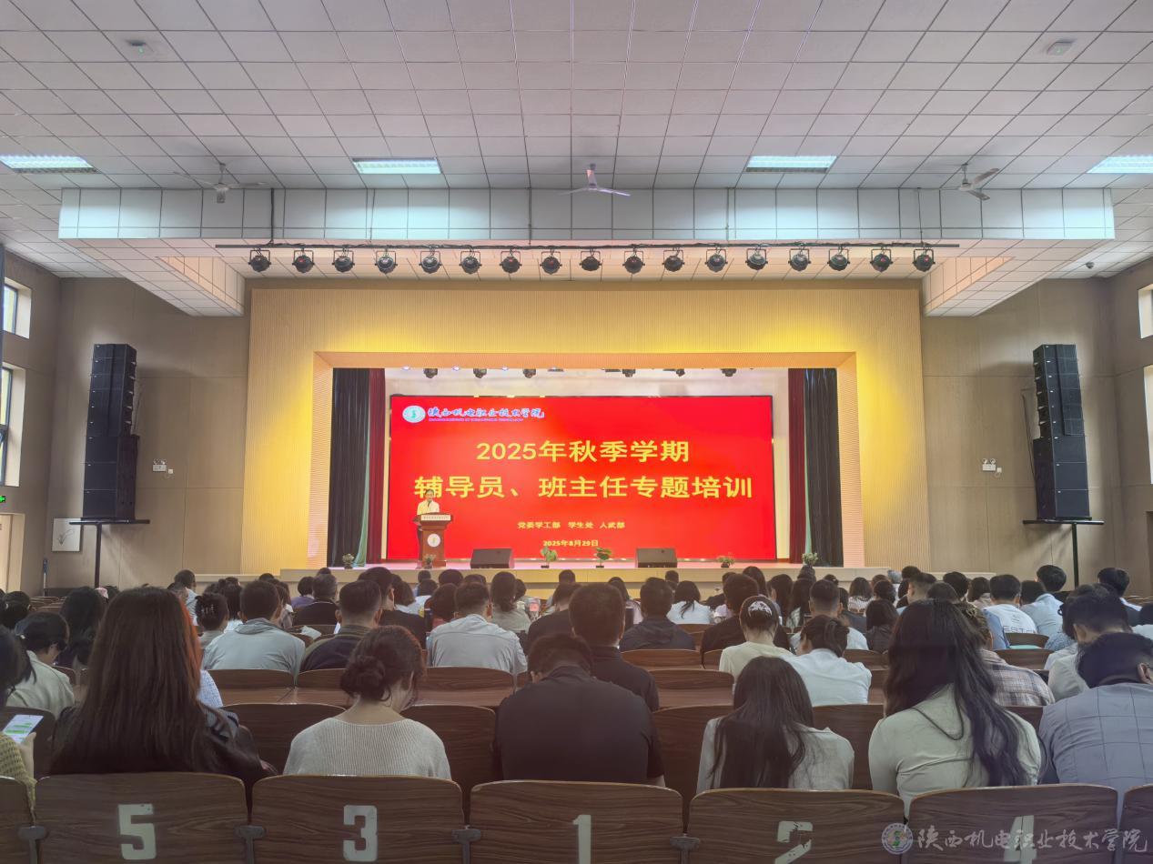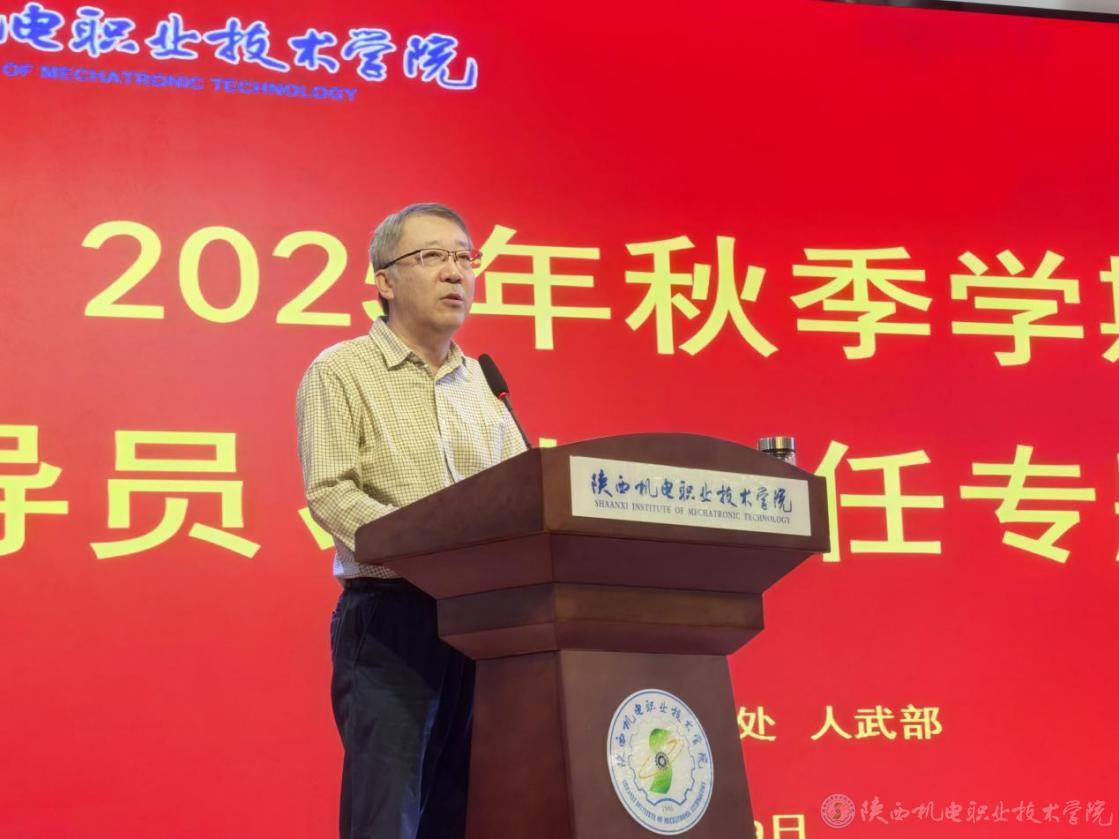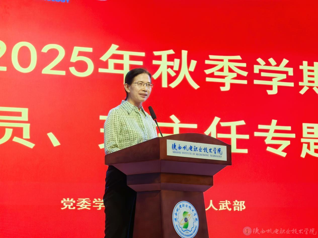 8月29日,陕西机电职业技术学院2025年秋季学期辅导员、班主任专题培训在宝福路校区大礼堂举行。党委副书记张琴出席。培训由党委学工部部长、学生处处长王建斌主持。