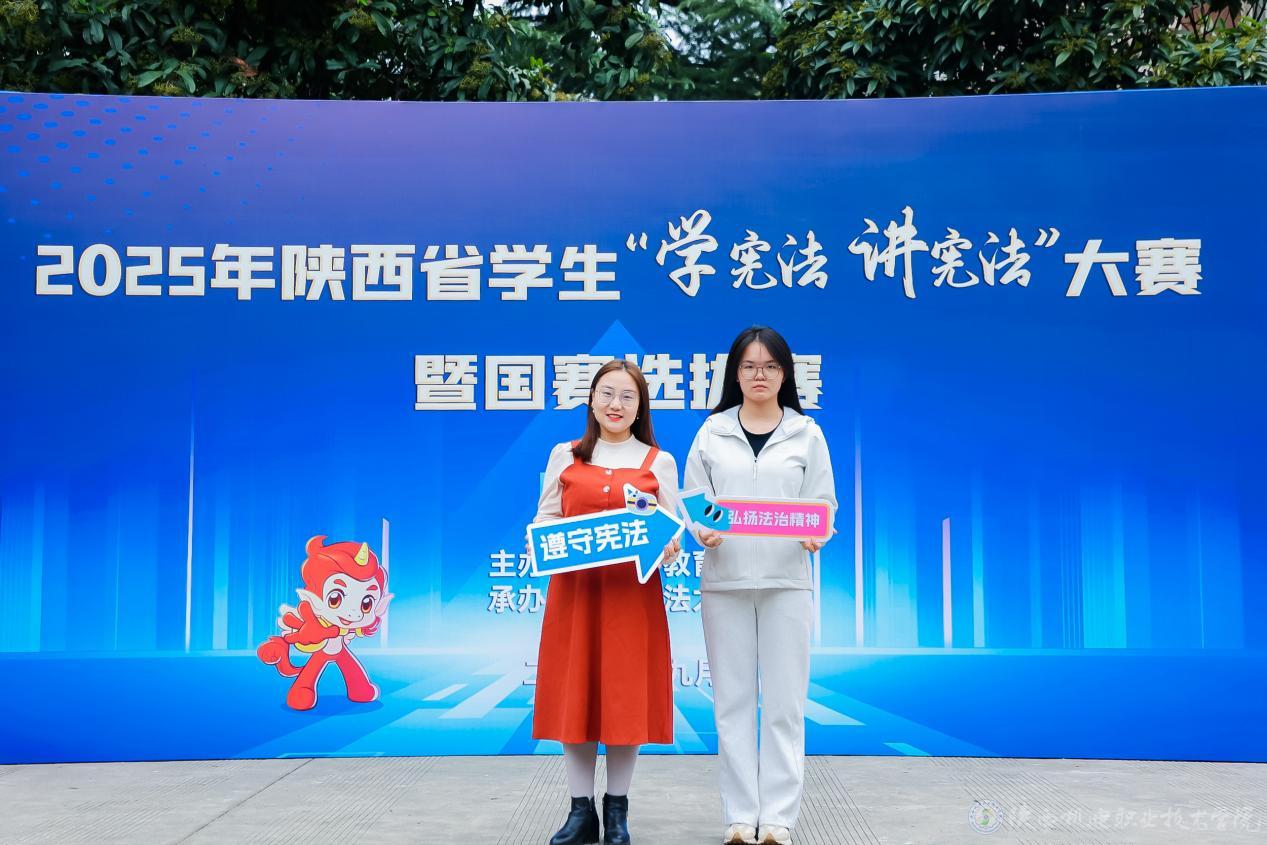 9月27日,2025年陕西省学生“学宪法 讲宪法”大赛暨国赛选拔赛在西北政法大学举办。陕西机电职业技术学院电子信息学院24电气技术3班学生王思婷在高校组素养竞赛中表现出色,荣获优秀奖,马克思主义学院教师王乐琴荣获优秀指导教师奖。
