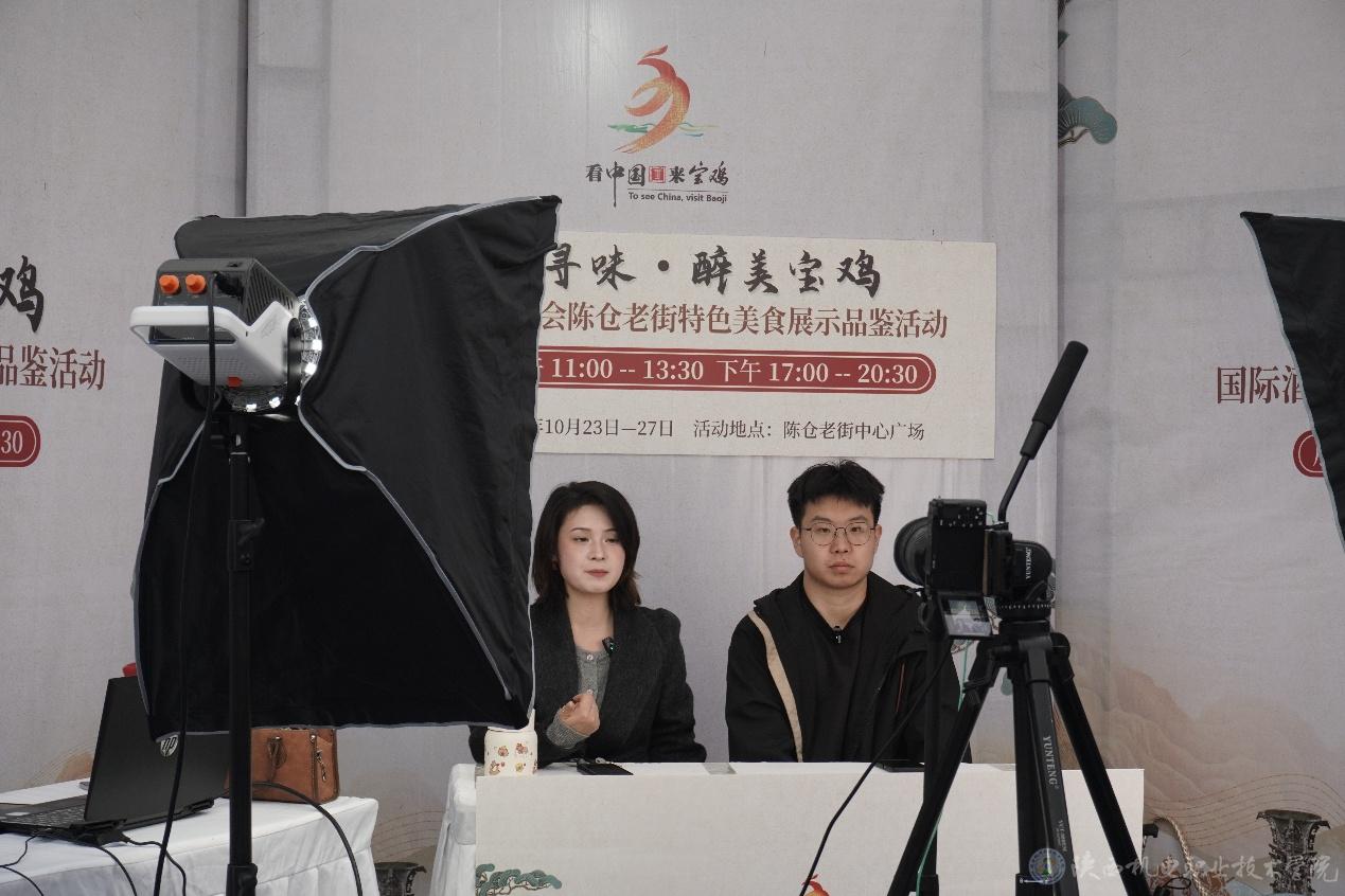 此次展会创新实施“主场馆+街区全域布展、商旅文一体联动”模式,构建“1+1+N”沉浸式展会空间,为学生提供了多元化的实践场景。展会现场,学生们分组行动,有的负责西凤酒展区的直播推广、有的聚焦非遗技艺体验区的文化展示、有的则参与“醉美宝鸡”消费体验周活动的线上宣传。学生程嘉琦说:“通过直播,我们不仅推广了产品,更讲述了宝鸡酒文化的故事。这比在教室里模拟实训更有成就感,更能锻炼我们的专业能力。