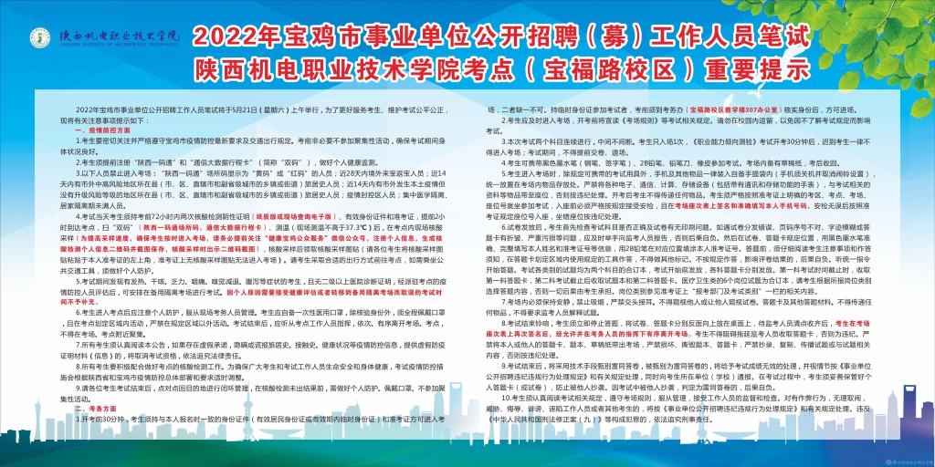 2022年宝鸡市事业单位公开招聘(募)工作人员笔试陕西机电职业技术学院考点(宝福路校区)重要提示